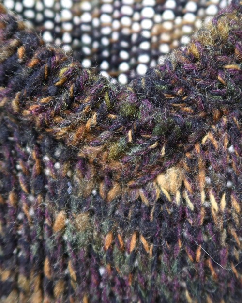 多色の糸で編まれたVネックニット。