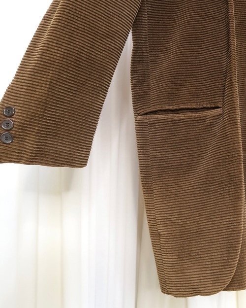 ブラウンのコーデュロイ変形ジャケットコート。